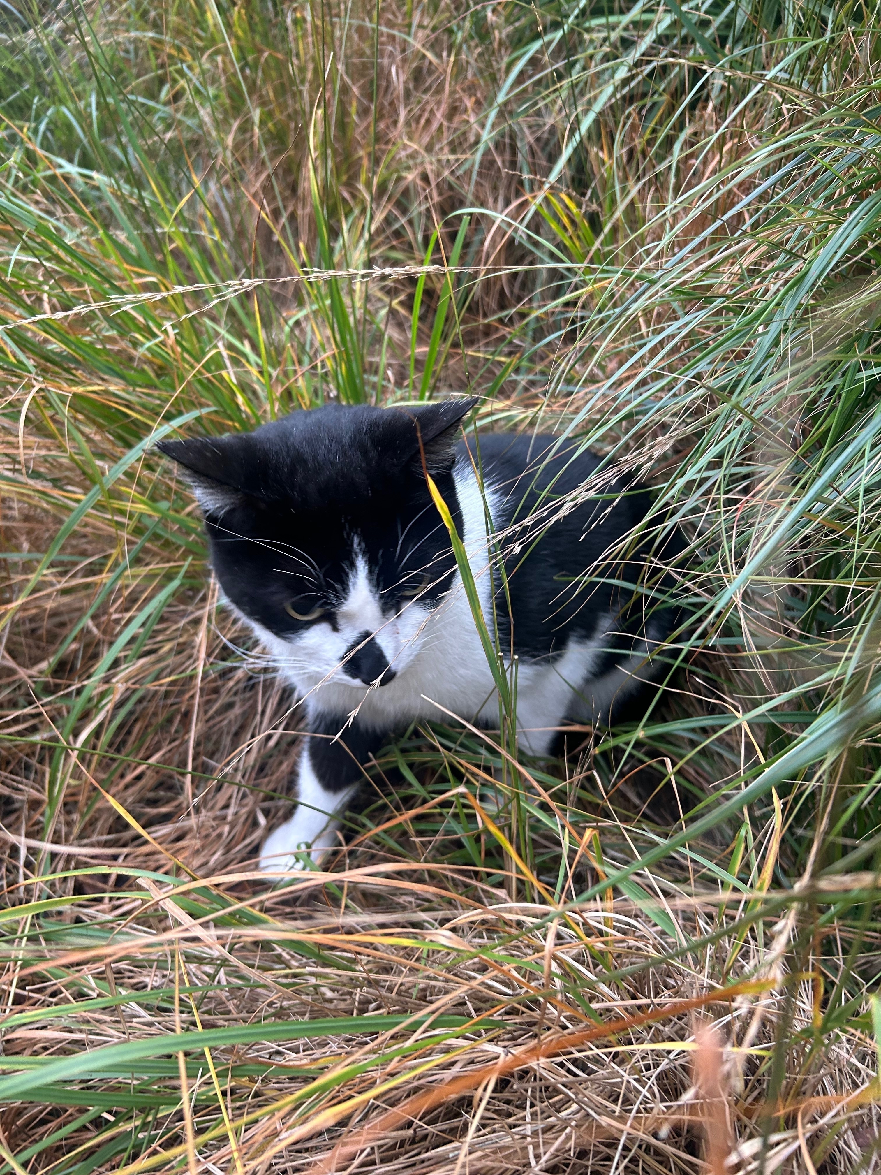 Grey and white cat. Won’t let you touch him b...