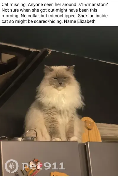 White ragdoll. Fluffy. No collar. Neutered and microchipped. Indoor cat. Went missing yesterday morning from our house. Last seen around 9am on 31/03/2026 sleeping on the grass at Sandbed court flats.