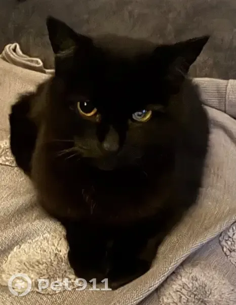 All black female cat has been hanging around our house in the Ballyhackamore area. She is quite timid, but loves affection once she trusts you. Fully house trained. Taken to a vet yesterday who said she is chipped but not registered. She has a broken tooth on the bottom right, & also an eye condition (which may be new).