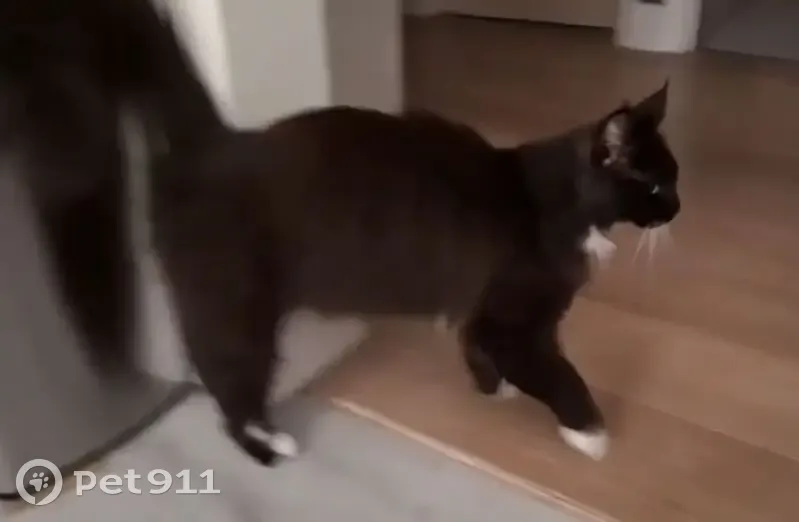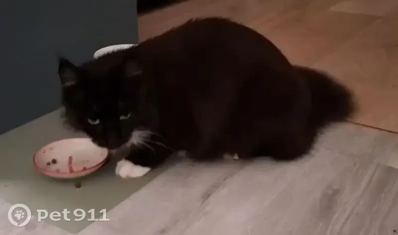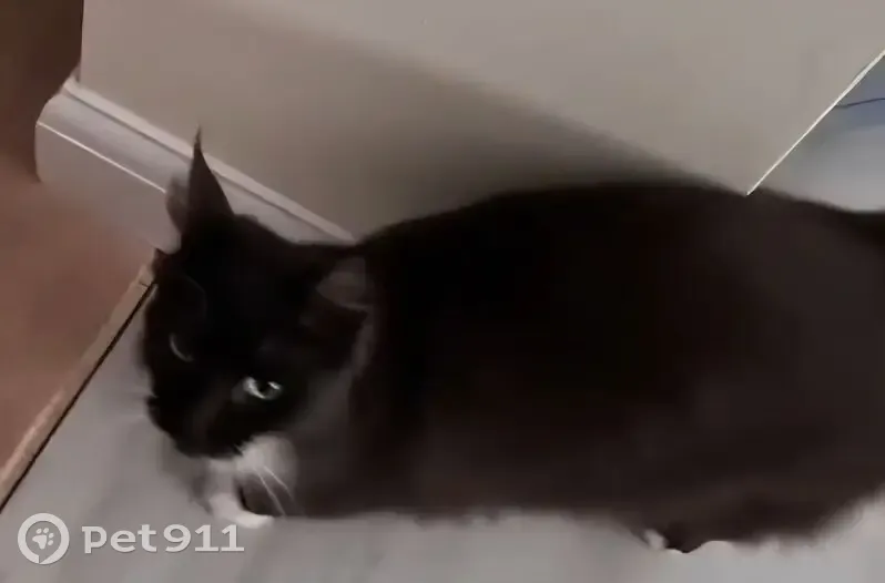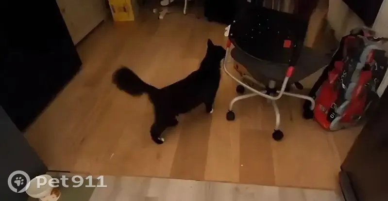 Very long black hair and huge bushy tail. Almost looks like a Maine coon - he has tufty ears. Distinctive white toes on his back left foot - some black fur in between each. White bib, very friendly and affectionate even though I'd never met him before. Thinking it might be a boy cat but not 100% His fur was really soft and seemed to me someone must own him, but I could feel be was a bit skinny. Worried he's lost, and not sure where to check. He went upstairs and passed me when I woke up in the middle of the night, I was very confused! But seemed perfectly at home in my home! Gave him some biscuits as he seemed very hungry. I wondered if he was friends with my kitten but he bolted when he heard her come down the stairs. I don't know if he'll come back but he might since I gave him food! We want to try and catch him so we can check for a microchip. Will try and update.