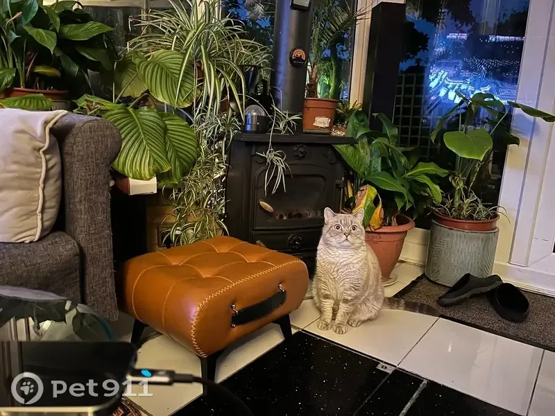 Ash is an indoor cat and allowed out in the back yard under supervision, this morning he went out and another cat came on the fence and it went chasing after it and has still not returned home. He was last seen around 8.30am this morning and there is still no sign of him. He has an offwhite coat with some dark lines and is a straight ear Scottish fold. He is around 4 years old. He is very shy but very friendly and gets scared with loud noises like the vacuum Cleaner or fireworks and is around 5kg in weight. He was microchipped at Slough vets for pets